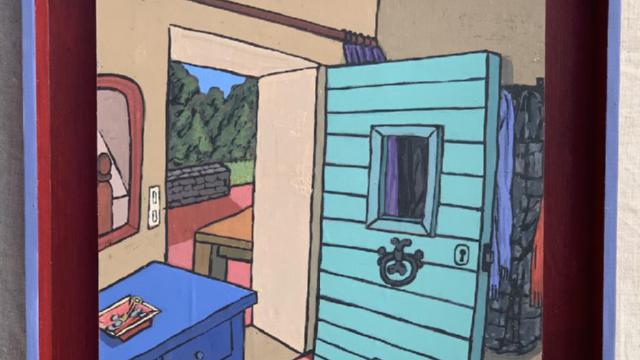 La chambre d'Henri, acrylique sur toile, 75x64cm encadré, 2025. Collection privée.