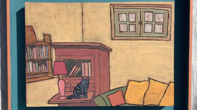 Le chat de Vincent, acrylique sur papier marouflé, 39x55cm encadré, 2025. Collection privée.