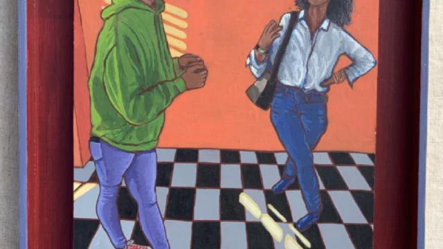 Mon expo, acrylique sur papier marouflé, 39x51cm encadré, 2025
