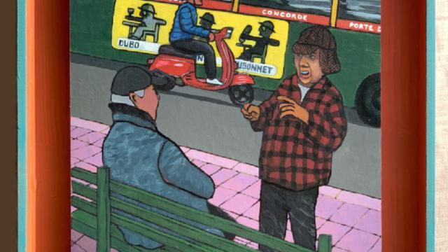 L'arrêt de bus, acrylique sur papier marouflé, 39x51cm encadré, 2025