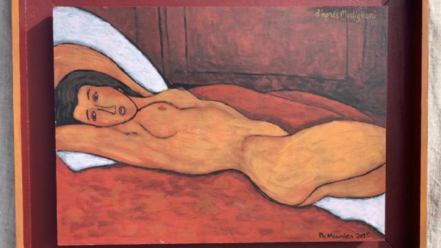 D'après Modigliani, acrylique sur papier marouflé, 51cx39m encadré, 2025