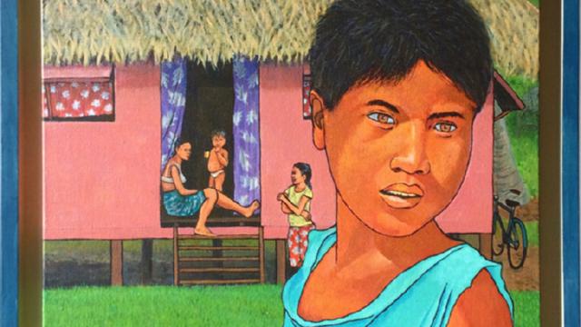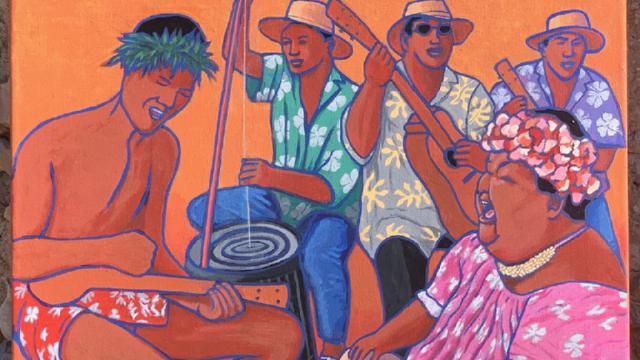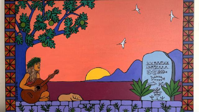 « Te himene ora », l’hymne à la vie Acrylique sur toile, 50 x 70 cm, 2024. 3e place aux Gauguin Awards de mai 2024. Collection privée.