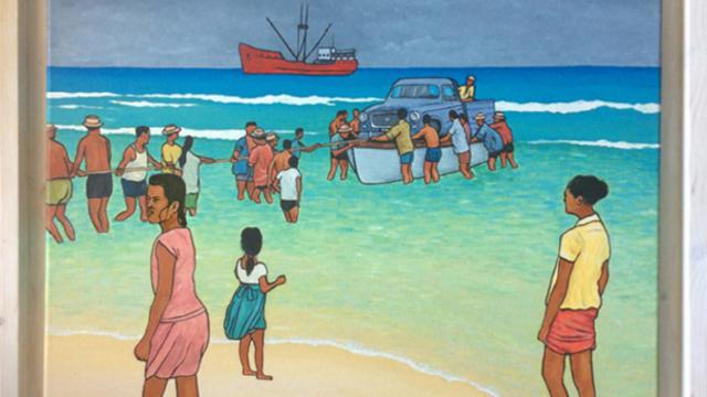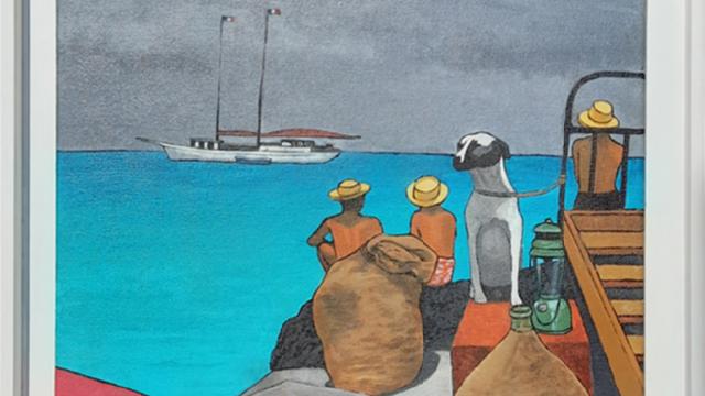 Débarquement de la goélette. 2022. Acrylique sur toile, 50 x 65 cm. Collection privée.