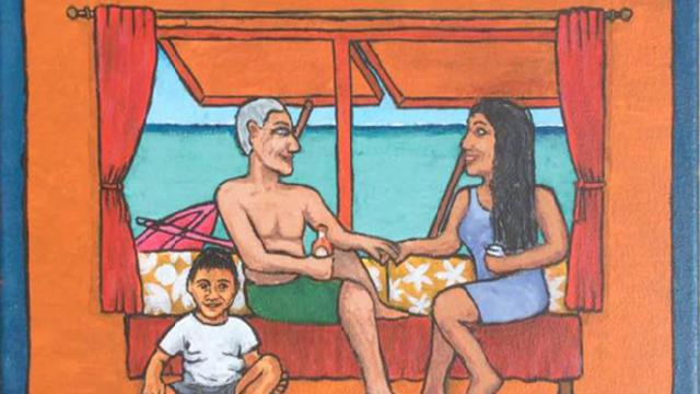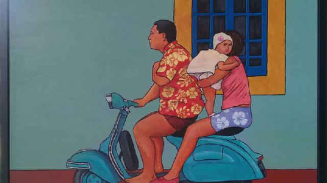 Famille en Vespa. 2020. Acrylique sur toile, 50 x 65 cm. Collection privée.