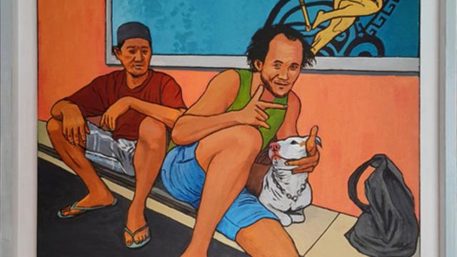 Te ta'ata uteute (l'homme en rouge). 2020. Acrylique sur toile, 50 x 50 cm. Collection privée.