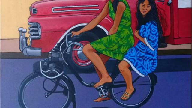 Balade en Solex. 2020. Acrylique sur toile, 50 x 65 cm. Collection privée.