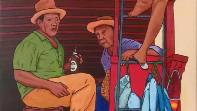 Départ pour la pêche. 2022. Acrylique sur toile, 50 x 65 cm. Collection privée.
