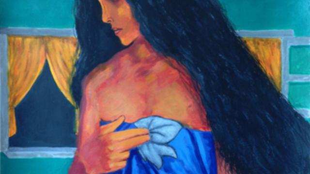 Vahine au pareo bleu. 2018. Acrylique sur papier, 21 x 30 cm. Collection privée.