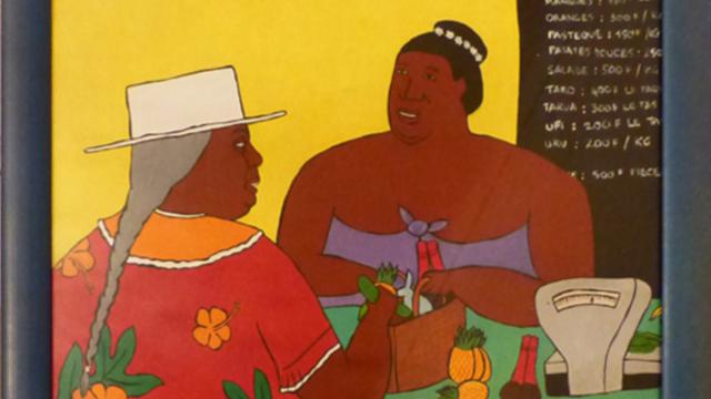 Marchande de fruits et légumes. 1992. Acrylique sur contreplaqué, 60 x 80 cm. Collection privée.