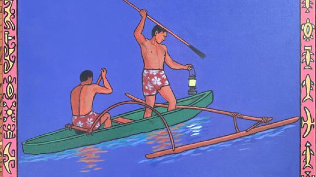 « Pêche de nuit au harpon » Acrylique sur toile 61x50cm 2024 Prix: 70.000XFP (590 €). Collection privée.